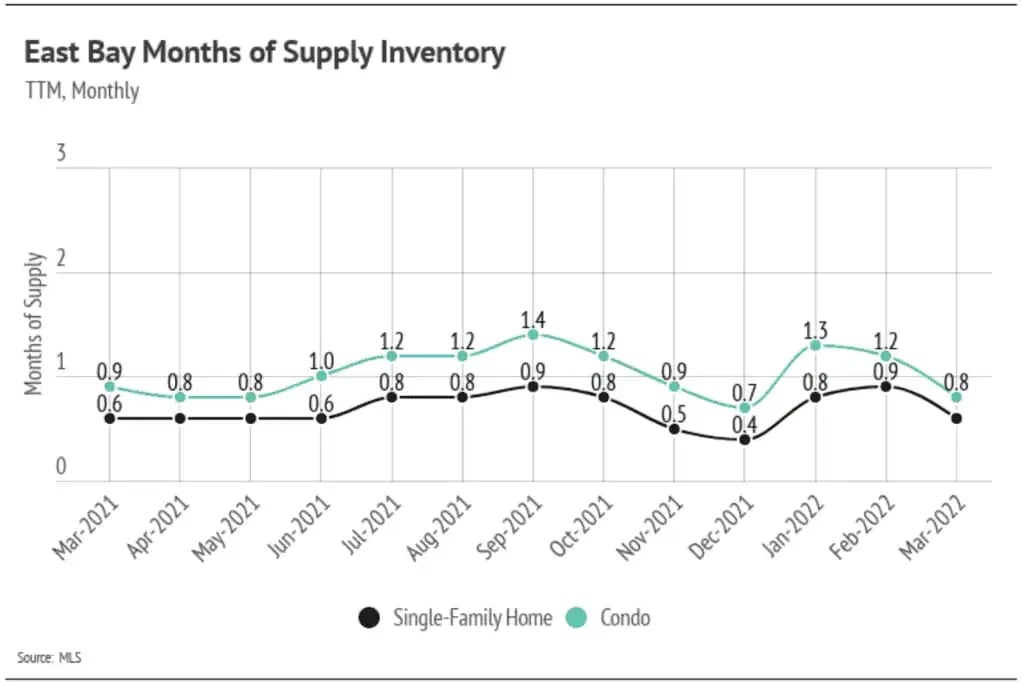 Much like the rest of the country, East Bay has seen the same trends of low inventory, rising rates, and high demand.