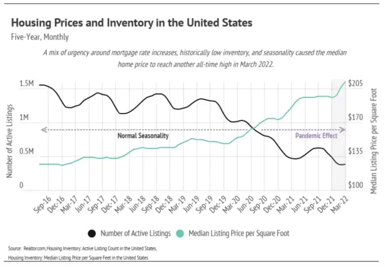 Home prices in the United States have hit a record high. With historically low inventory, coupled with urgency around rising interest rates, incentivized homebuyers are encouraged to buy sooner rather than later.
